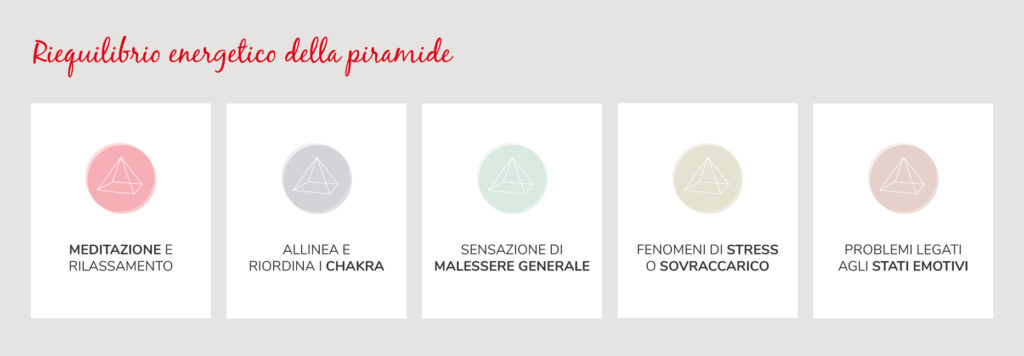 In cosa consiste esattamente questa disciplina? La sua natura, all’apparenza molto semplice, permette di trasmettere un messaggio sulla frequenza del nostro benessere, in modo che l’intero organismo risuoni lungo un’onda di energia positiva. Il soggetto che si posiziona al di sotto della piramide riesce ad assorbirne l’energia ed entrare in risonanza con essa, queste strutture infatti mettono a disposizione della persona una risorsa importante nei momenti in cui si ha più bisogno di una “ricarica” fisica, emotiva e spirituale.